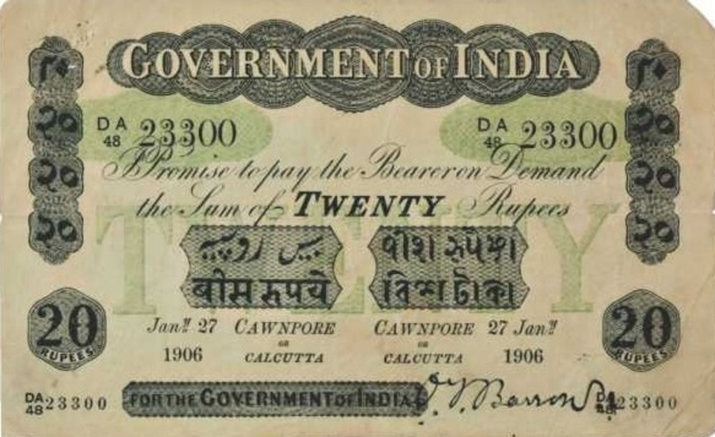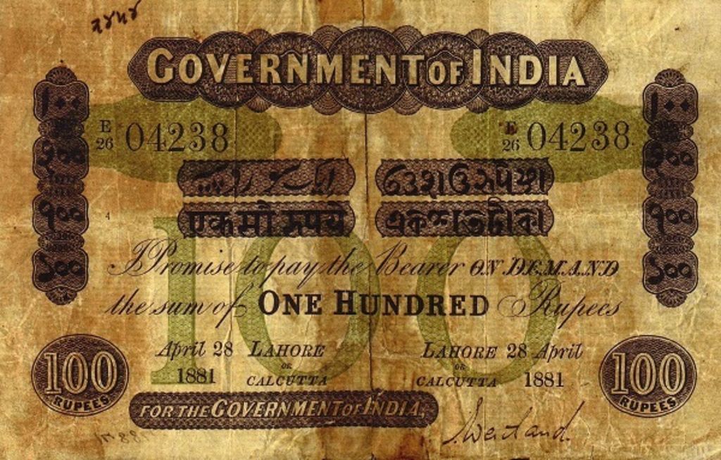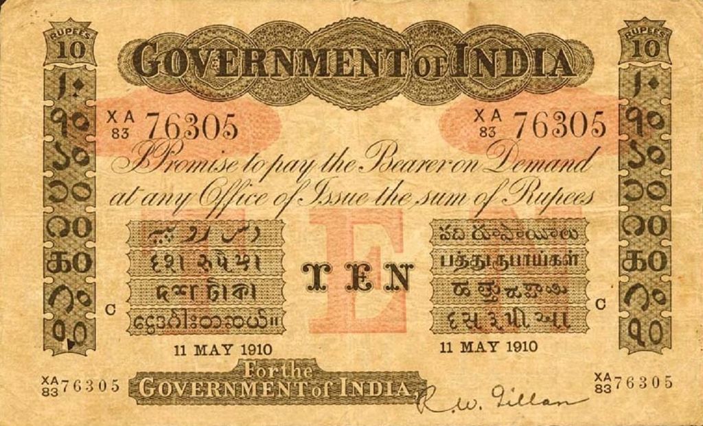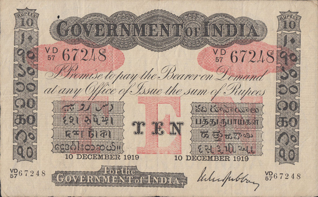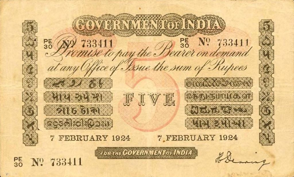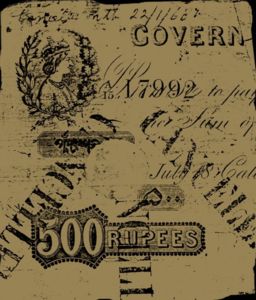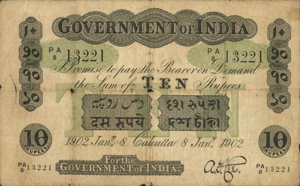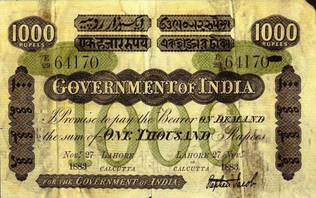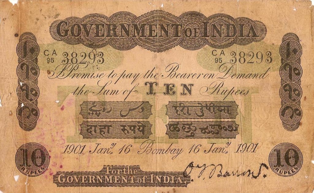 - 5 rupee. Specimen only dated 1858, it is assumed that no 5 rupee notes were issued for circulation.